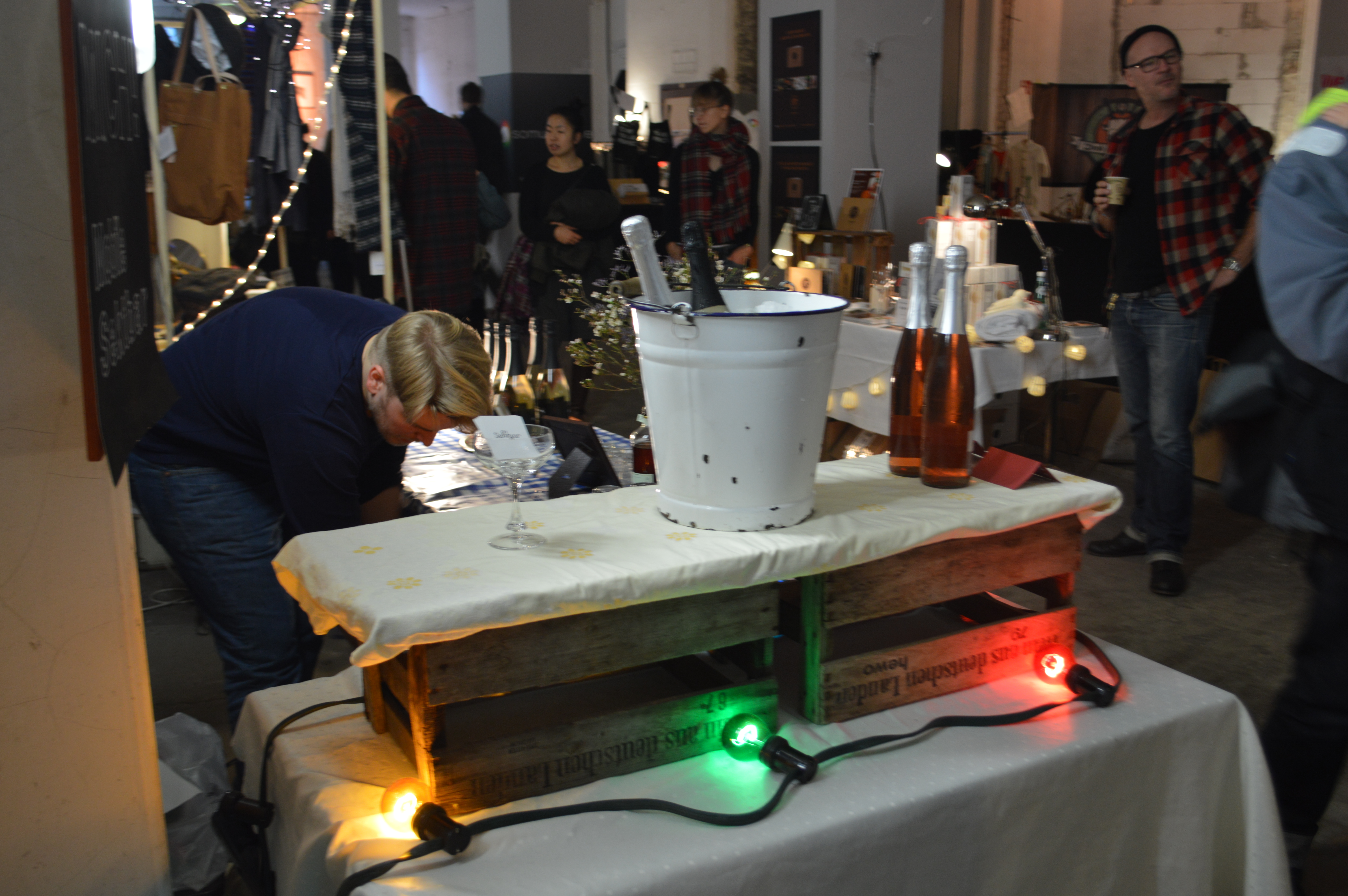 Being in Berlin, we don´t have limit ourselves to tradition but have to be able to embrace originallity, innovation and start-up spirit. So instead the otherwise ubiquitous Glühwein, there were whisky home brands and shots exhibited for tasting and Champage bottles cooling down in the buckets. The sweets looked very equsitive and they did not in the least resemble popular Lebkuchen. If anybody, however, had a strong feeling that Lebkuchen were inseperable part of to Xmas German tradition, a baking set with necessary ingridents could be purchased.